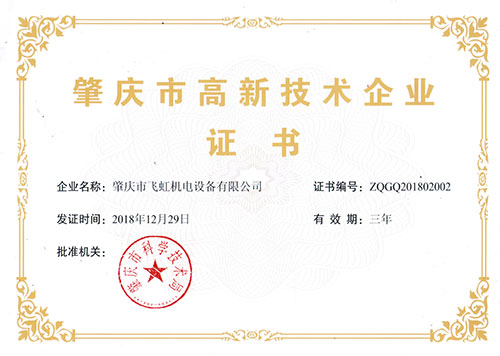 肇慶市飛虹機電設備有限公司,前身是“肇慶市長虹電器機械廠”,本公司始創于1992年,2002年改名為“肇慶市飛虹機電設備有限公司”。