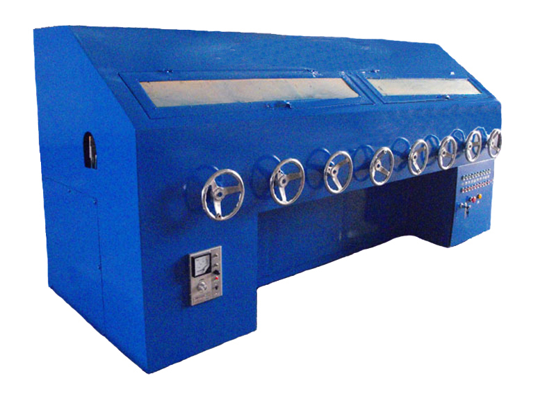 PG-(1-8)組拋光設備,主要是發熱管廠家對發熱管表面光潔度要求不同而選擇位數的;有1-8組機器;拋光輪由電機帶動高速旋轉。壓輪由另一電機通過減速器帶動。在機器設計上,可以方便地調整直徑大小;拋光輪的軸線傾角,更能滿足不同管徑的需要。